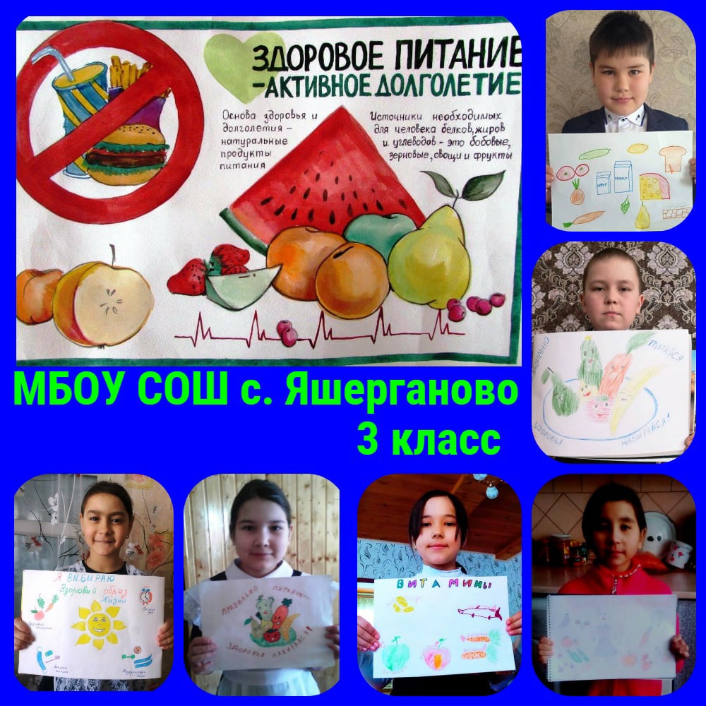 В МБОУ СОШ с. Яшерганово 24.02.2021г. был проведен Единый Республиканский день открытых дверей "Родители Башкортостана за здоровое Питание", в рамках которого были проведены Уроки здоровья "Из чего состоит наша пища" (1-4кл.), "Здоровое питание" (5-8кл.), конкурс рисунков "Мои любимые продукты" (1-2 кл.), конкурс стенгазет "Правильное питание-здоровое питание", а также выпущены видеоролики "Зачем нужна горячая еда?"(9 кл.). Был оформлен стенд "Правильное питание-залог здоровья!"